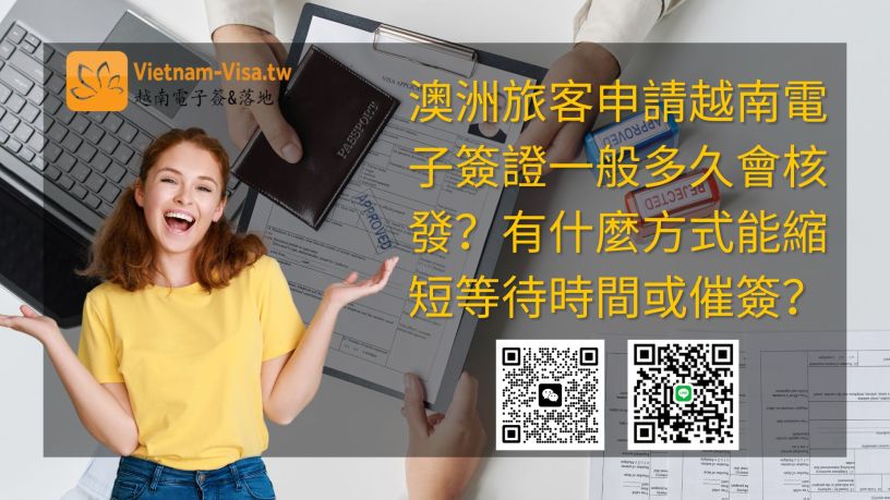 澳洲旅客申請越南電子簽證,一般來說官方表定的作業時間是 3 個工作天(越南時間 GMT+7,不含假日及越南節慶)。然而,實際的核發時間會因為申請人數的多寡而有所不同。